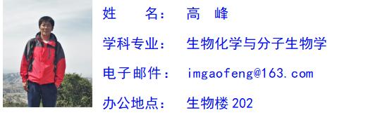 高峰,男,蒙古族,中共党员,理学博士,副教授,硕士研究生导师。学院党委副书记、副院长,内蒙古生物化学与分子生物学会理事、内蒙古细胞生物学会理事。2019年入选自治区高等学校青年科技英才支持计划。主要从事植物生理与分子生物学研究。主持国家级项目1项、省部级科研项目3项。发表研究论文20余篇,出版专著1部。承担本科生遗传学、分子生物学及研究生分子遗传与表观遗传等课程教学。