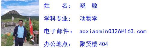 晓敏,男,蒙古族,中国民主同盟,农学博士,副教授,学术型硕士研究生指导教师,生物科学系副主任。研究方向为绿色饲料添加剂及反刍动物功能性饲料的开发与利用。近年主持省部级科研项目2项,地厅级科研项目4项,发表学术论文35余篇,其中SCI论文15篇;实用新型专利2项;出版教材1部,工具书1部。承担本科生《人体组织学与解剖学》、《人体组织学与解剖学实验》、《人体及动物生理学》、《人体及动物生理学实验》、《动物解剖生理学》、《动物解剖生理学实验》、《中学生物学实验教学研究》等课程的教学工作及教育实习指导工作;承担硕士研究生《动物实验技术与实践》等课程的教学工作。