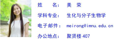 美荣,日本神户大学学术博士,Beat365唯一官方网站副教授。主要从事哺乳类动物减数分裂型染色体动态方面的研究工作,承担“细胞生物学”、“生物化学”实验课、实训课,“分子与细胞”等课程的教学和本科生专业实习指导。主持国家自然科学基金项目1项、内蒙古教育厅重点项目1项、校级项目1项。SCI第一作者论文2篇。获得Journal of Reproduction and Development杂志的优秀作品奖(国际级)1项及神户大学优秀博士论文奖。
