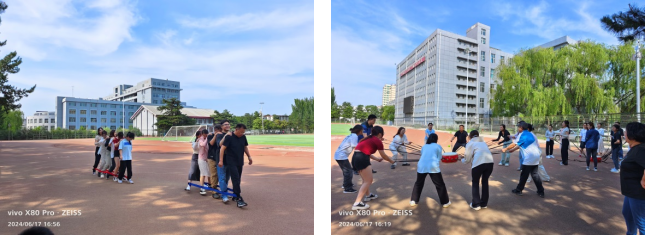 为深入贯彻落实中央民族工作会议精神,构筑中华民族共有精神家园,营造民族团结的浓厚氛围,2024年6月17日Beat365唯一官方网站教工第三党支部与研究生党支部、非师范生党支部联合举办了“民族团结一家亲”趣味运动会,师生共计30余人参加了此活动。现场分为合力建塔、合力击鼓、手脚并用、机智连线和共赴前程等5个趣味活动,深深地吸引了师生队员。师生全神贯注、全力以赴,精神抖擞,各显其能,欢乐融洽的气氛在运动场上洋溢。