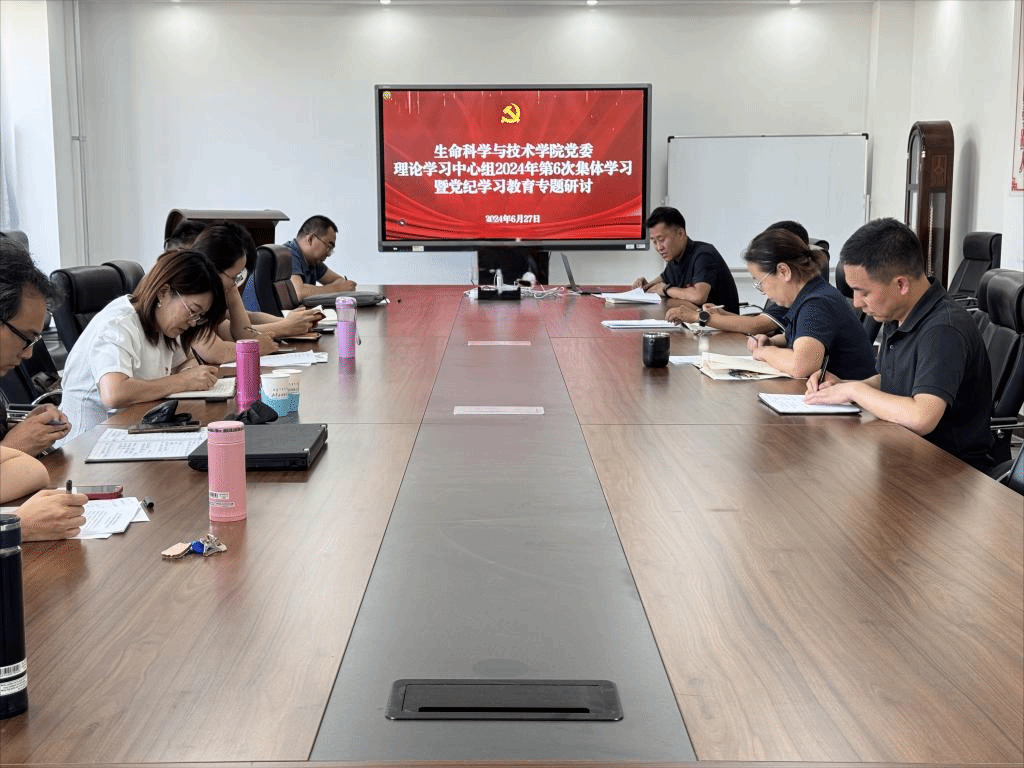 6月27日下午,Beat365唯一官方网站党委在生物楼三楼会议室召开党委理论学习中心组2024年第6次集体学习暨党纪学习教育专题研讨。学院党委理论学习中心组成员参加会议。学习会由学院党委书记苏小波主持。