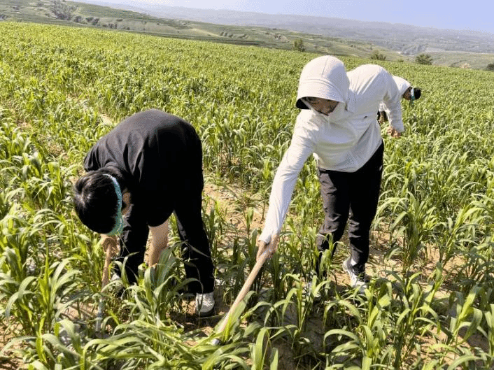 走进田间地头,拿起锄头,挥洒汗水,体验最质朴的农耕劳作。从最初的生疏笨拙,到后来动作逐渐娴熟,每一滴汗水、每一层薄茧,都是同学们对“粒粒皆辛苦”的切身体会。手中锄头与土地碰撞的声音,回荡在乡村的清晨,也镌刻在队员们心中。