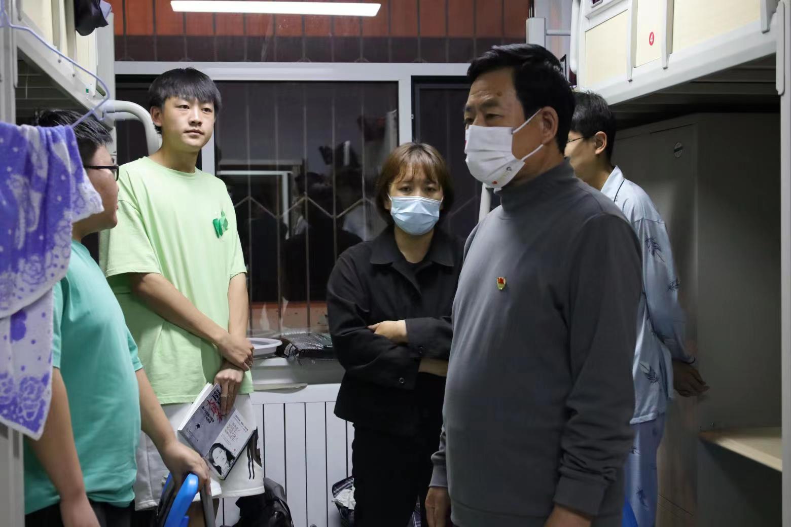 十月风寒,生科情暖。为切实做好疫情防控常态化下的学生管理工作,了解疫情期间学生的学习、生活状况和思想动态,在国庆假期期间,Beat365官网党委书记徐忞、学生工作与就业办公室主任默原、辅导员胡日查等老师深入学生宿舍,为学生送去关心和问候。