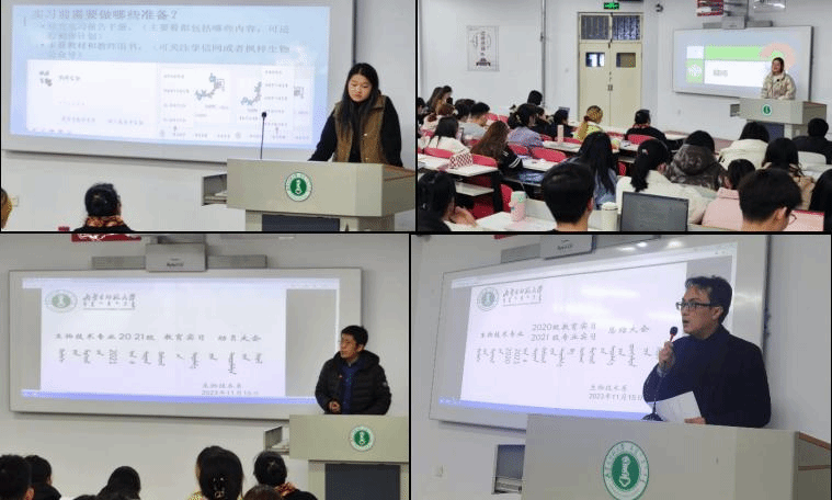 第三项,开展生物技术专业2021级教育实习动员大会,由2020级教育实习生代表包晶,安楠,王嘉钰等同学留下继续分享教育实习双选、实习前的准备、实习过程中注意事项等经验分享给2021级同学。与会老师们补充了教育实习工作的注意事项。