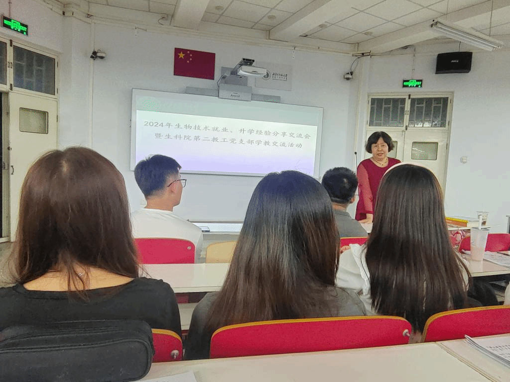 在活动的后半部分,第二党支部书记李永教授、生物技术系教师卢萍教授和西北民族大学生物医学研究中心的周建华副研究员也分享了他们的考研经验,为学生们提供了更多的指导和建议。