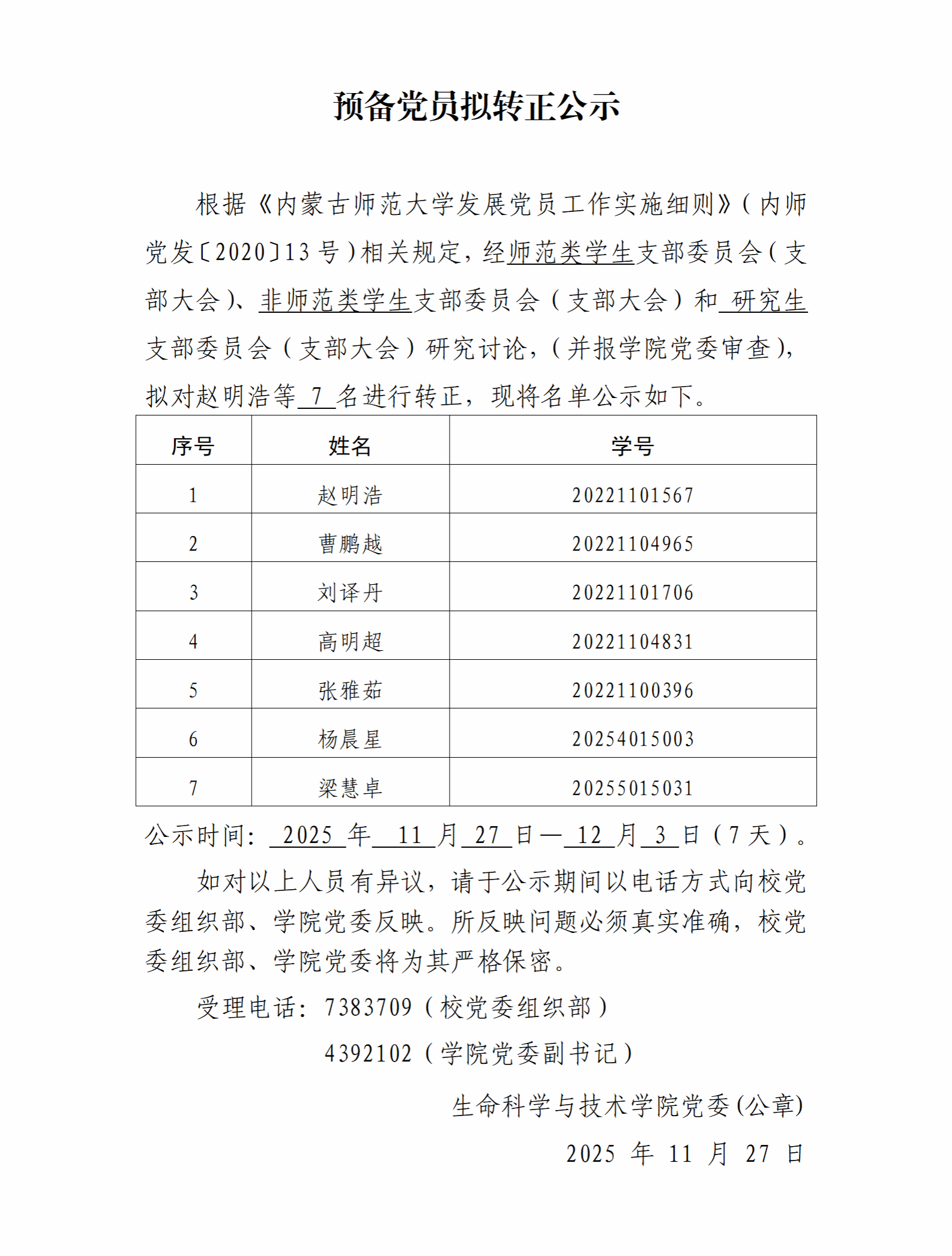 预备党员拟转正公示