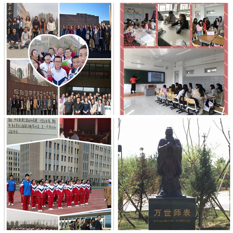 二是班主任实习,我们跟着班主任老师学习管理班级的方法,包括如何和学生沟通,如何提高学生的成绩排名等。荣幸的是,我们在3月中旬参加了乌海市千名班主任培训计划,更加深入地认识到老师这一职业的神圣性。